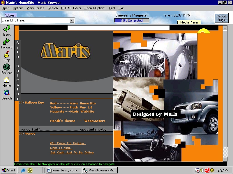A MUST SEE FOR ALL OF YOU! This is a multi-featured Internet Explorer Loved by all. Don't Forget to vote me! It's features include Favourites, History, Status Bar, Juke Box, Search while online,and is very very customizable!