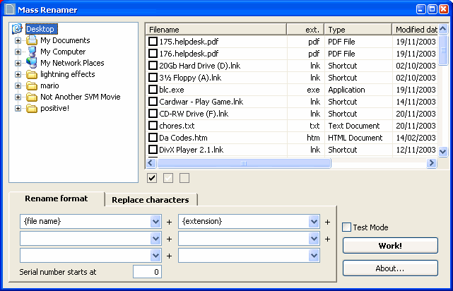 A program that batch renames files in a folder, based on Adobe Photoshop's batch renaming system.