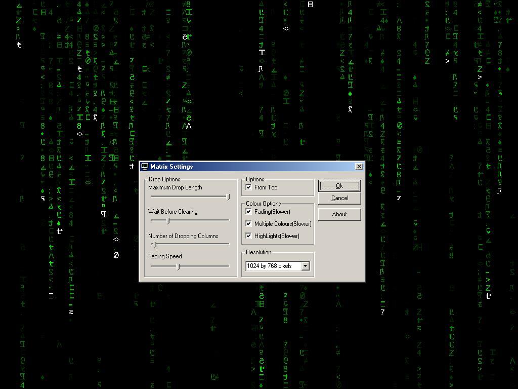 This is now the working Version of the Matrix ScreenSaver. The Settings now work and it has been improved