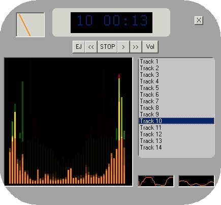 This program was put together to visualize sound by audio spectrum, Oscilator, VU meters. It is a simple CD player also.