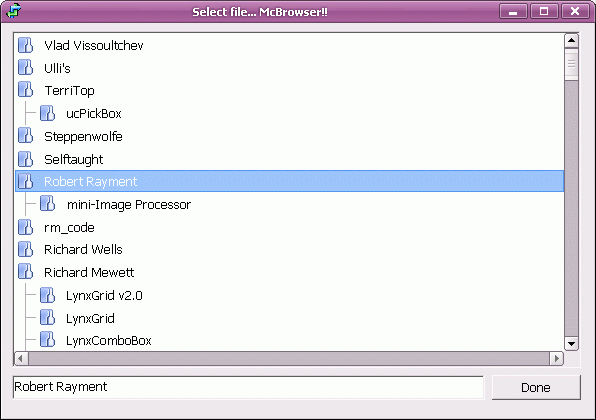Description: Added features... 1) Horizontal ScrollBars 2)Drive's Label 3)New tree view line style : McListBox 3.2 is the hybridized version of ListBox,FileList,FolderList,DriveList,FileBrowser(with filter) and FolderBrowser. The control will extract the true icons (16*16,32*32) , such that the items will have the same icons that the explorer is showing. The FileBrowser and FolderBrowser modes are auto-responding... ie you can open the folder by DbClicking on the list item. Apart from the previous version, in the new version it is not neccessay that you REFRESH the control to show the items, the List will be automatically refreshed. The control is more than 4 times faster than vb's ListBox. I am submitting this as a new post, bcose I wish to keep the old (Listbox only) version as it is. Features includes... Item completer, Subclassing, Api scrollbars, XP style, Mouse wheel, high Performance, Ownerdrawn, Stylish, Multi-line selection, Custom list-icons, Item Highlighting, Unicode support, Adjustable RowHeight, List Sorting, Grid lines and nice Gradient effects. Try it and feel free to comment... HAVE A NICE TIME!!! Jim Jose :)