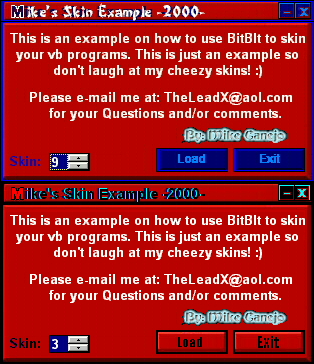 This is a decent example on how to skin a form. I made 10 skins and Commented every line in this project so you can see what's going on and how BitBlt works from top to bottom. If you don't know BitBlt that well or at all, this is a perfect example for you. Please RATE this and soon I'll make a v2.0 of this. And if you make a good skin for this,