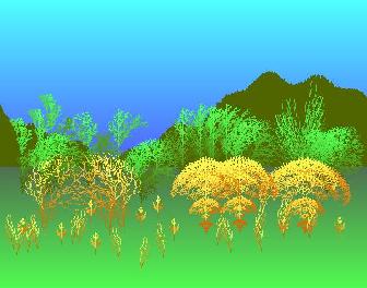 Mini-Fractal Painter by Robert Rayment. (Correction for no drive) (Additions: Faster string-byte handling + DrawWidth) The starting point for this was Loreno Heer's LSystems prog on VBC, where the VB6 Replace function is used to develop the LSys strings. The trees' & plants' size, complexity, color & orientation can be varied. See screen shot which was made in just a few seconds. This prog could easily be extended to include other functions (I've resisted doing that and have only included those necessary to produce a picture like the screenshot) or the methods could be added to an existing VB paint program. VB or ASM can be used to translate the LSys strings and draw to the screen. Win98, Zip 55KB.