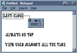 This program doesn't do much (displays memory usage percent) but it does include 3 useful modules. The first one allows you to set a window to always on top by suppling an hWnd value. The second allows you to move a borderless window. The third gets the memory status of the computer. Line by line commented. Please rate on code structure, not application functionality. Thnx!