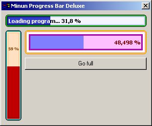 This is a new cool progress bar control. I've been doing it two days, based partly on my previos progress bar (I submitted it now already as I'm doing my military service and are therefore limited in time). Though this one is different by looks and is also improved by speed.