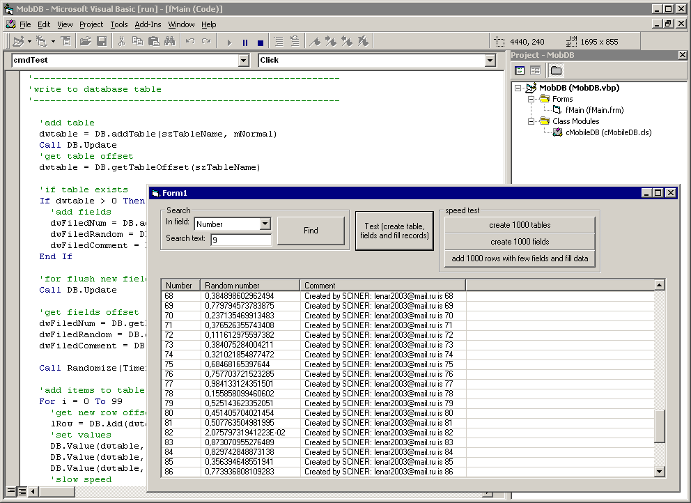 Custom DataBase Engine Class Pure VB DataBase in one file. Tables, Fields, Rows, FieldTypes ... Without any DLL, OCX and other.