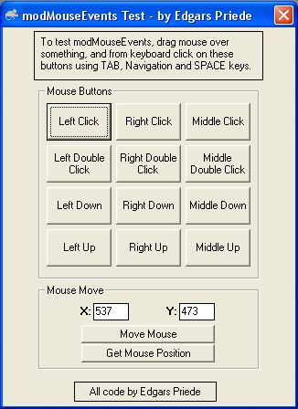 With this module you can simulate: Left Button Click, Left Button Double Click, Left Button Down, Left Button Up, Right Button Click, Right Button Double Click, Right Button Down, Right Button Up, Middle Button Click, Middle Button Double Click, Middle Button Down, Middle Button Up, Mouse Move.