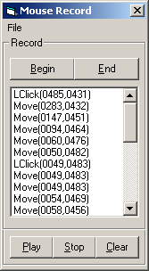 Fully commented. This program allows the user to record and playback mouse movements and clicks. When recording, it adds the mouse's coordinates and what the mouse is doing (moving, clicking) to a list. Then the program scrolls through the list and follows the scripts instructions on where to move and what to do.