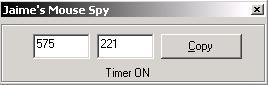 This is a Mouse Spy Example. It will get the current X and Y values of your mouse cursor. It has a feature where you can stop the timer by pressing enter and copy the values to the clipboard.