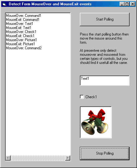 This projects demonstrates how you can detect Mouse Over and Exit events on a form using a class module.