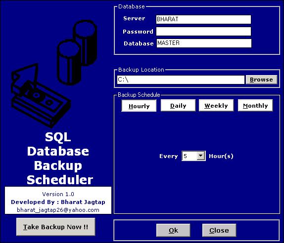 this tool provides facility of MS Sql Database Backup and scheduler from Remote[client] Computer.