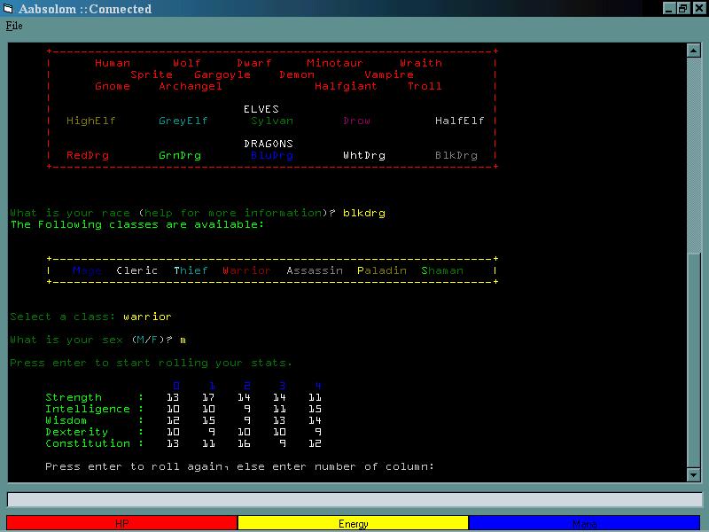 It was originally made for to go with the BeMUD program posted a little while back. I finally got back from school long enough to post this. I made it several months ago but it seems to still be working just fine. Probably one of my better pieces of work as a beginner. =P