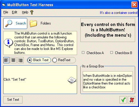 Hi. This a control that act as a command button, option button, checkbox, frame, menu and more by setting just a couple of properties. Let me know what you think. Paul