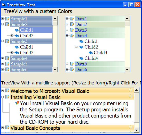 Hi all,the Multiline Treeview will help you to outline your data by including them inside the nodes,just like the normal TreeView, but with a major difference it will breakdown the large one lines to multiline(See the Screen Shot),also supports right to left alignment. Suggestions and votes are welcomed. Zyad.