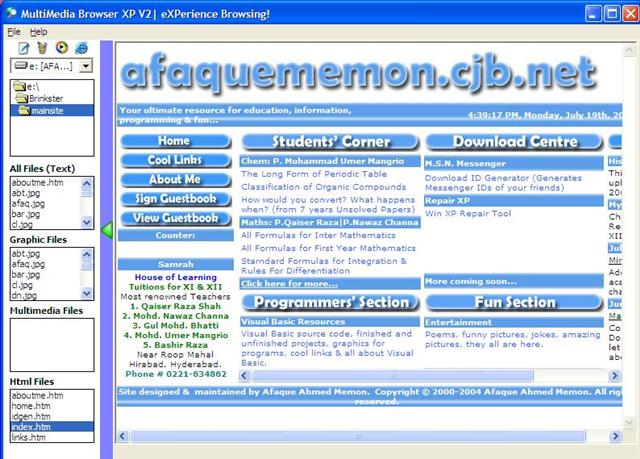 MultiMedia Browser XP V2 is an All-in-one file browser. It lets you view Text Files, Photos, HTML Files and plays videos and music files in just a single click. Its look is good and its handy keyboard shortcuts make switching between files much easier. Any comments and suggestions are welcome.