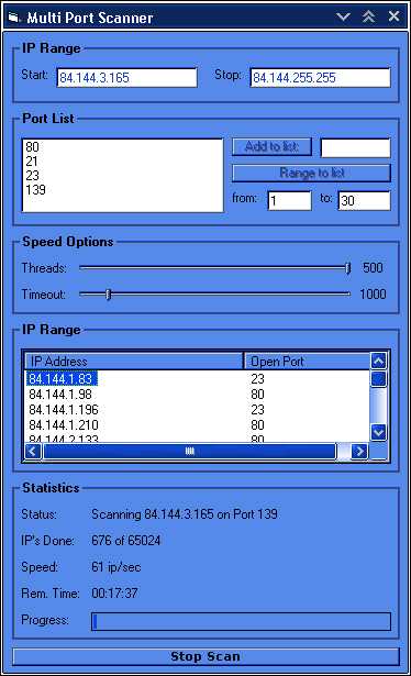 This is an example of a Winsock-Portscanner which scans a List of Ports.