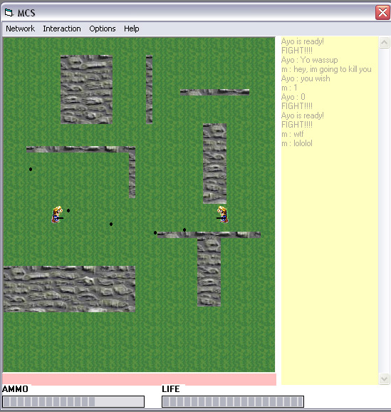 This is a multiplayer game in UDP Winsock, i use BitBlt to make it nicer. You have two animated characters going around shooting each other - that means bullets, mines, walls... The code itself is very flexible, its very easy to modify the map, only move rectangles around the form, or add some more, or erase some... I tried to pack in it the most useful features that you would need for Winsock programming... And how to use winsock to your advantage.