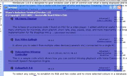 This is a replacement for DOS shell, I'm still working on it. But it does all DOS commands, I just need to add some other stuff to it. This only works in win 2k or XP becuase of the transparent form.