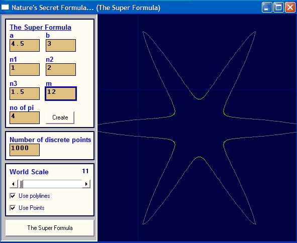 In year 2002 a scientist Johan Gielis found a formulation that simulates geometrical shapes of organic materials. This code, put those life forms on screen. Enjoy.