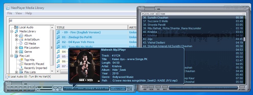 It handles the playing chores for MP3,Ogg, WAV, MIDI, CD Audio, It looks and sounds great, it's lightweight and powerful, and it manages your media in hard drive in a fantastic way by its easy to use media library. It has all features that a professional mediaplayer like winamp (Skin, equalizer, DFX, Library, Visualisation, Tag editing etc.) should have.