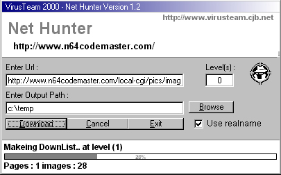 Oki to the Code : Net Hunter is a small program that connect to a web site useing the Inet1 control and downloads all the HTML and rips out the links, and Images. and downloads them for you.