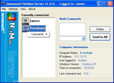 It has many other functions such as simply observing a client machine, Freezing the client machine to prevent any user access (even using Ctrl/Alt/Del), Sending Messages to the users of Client Machines, and Shutting Down/Logging Off users of the client machines.