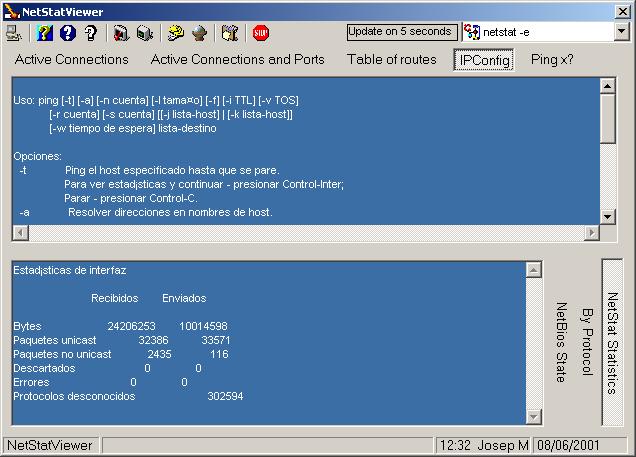 Netstat viewer execute netstat, nbtstat, ipconfig, ping console commnads and returns the results into visual basic on windows forms