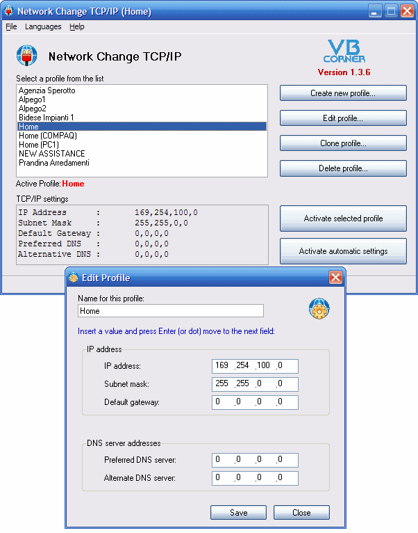 When you have to connect to a Lan, activate the appropriate profile. Go to other company? Active the relative profile! Finally, when you return to home, you can activate the Home profile or reset to DHCP, that is: "Obtain automatic IP and DNS address.