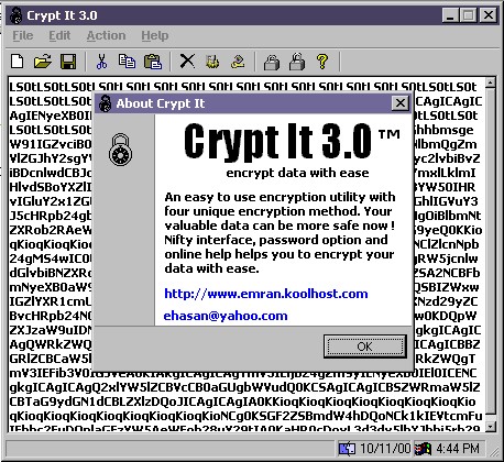 The upgraded version of the existing Crypt It 2.0 . Have a kool about box. Now supports four encryption method. A must have