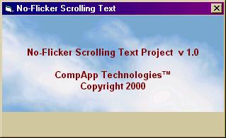 This project, gives an example on how to scroll text without flicker in a picture box. It's possible (but very awkward) to do this on a form, but in a picture box, you can have whatever background you like without messing around with paint events and such or hiding/showing parts of the picture directly on the form. Let me know what your think.