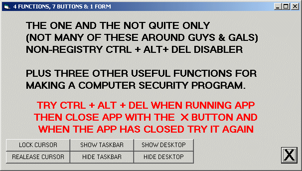 show/hide desktop, show/hide taskbar, restrict/deresrict cursor to form AND disable/enable