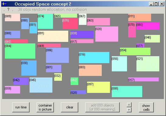 No comments have been posted about OccupiedSpaceFun, this function allocates randomly many objects (differerent size), no collision. Why not be the first to post a comment about OccupiedSpaceFun, this function allocates randomly many objects (differerent size), no collision.