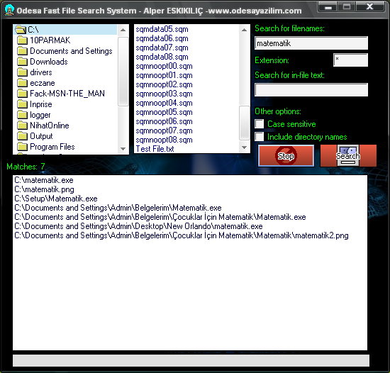 This code is very very very fast file search system.You can make search only in seconds.It likes win98 search system but it works in Winxp and all windows versions.