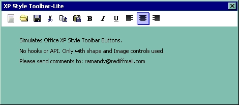 Creates Office XP Style Toolbar using image controls and shape. very lite. just try it. comments to [email protected]