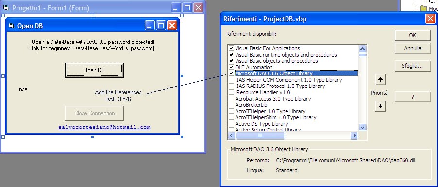 Open a DB via DAO 3.5/6 with password protected! This code just for beginners like me ;)
