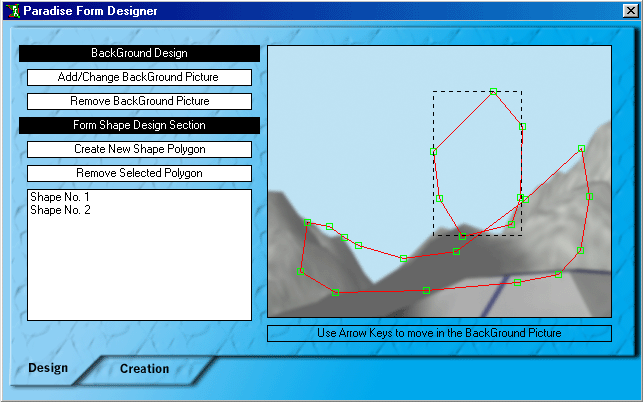 All of the Window Shape Designers Get Away! Here the Paradise Form Designer Comes! Why? Because using this program, you can also modify the shape you have designed! You Design your shape and give form properties you want to this program and it will automatically creates the form your want! An easy-to-use utility!