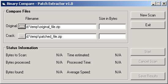 Binary compare two files and save the differences to file. you need to 2 files with equal length, one original and one patched.