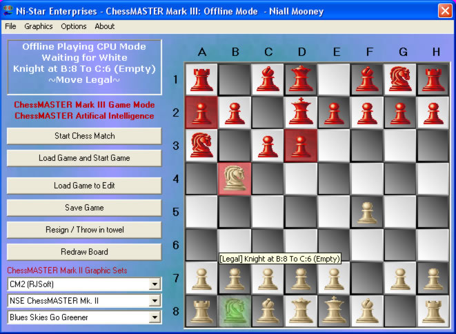 ChessMASTER Mark III is a chess program. You can play with a friend over the internet (Client/Server Modes, with chat and scribble boxes) or locally or you can play against the inbuilt computer AI opponants. You can even allow the AI to play itself, perhaps taking bets on the outcome!