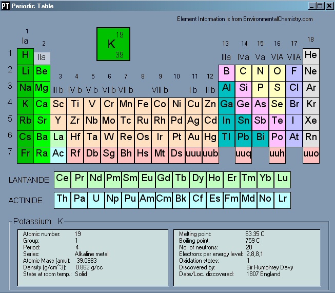 Another Periodic Table - this one has 26 attributes per element. The selection and display routines are compact enough. The Load arrays routines proved that you can only get 64K of code into one subroutine (who knew that?). Although spread out, the Load Arrays routine shortened the manual data inputing to a mere 10 hours. Still there has to be a more compact way to load arrays?