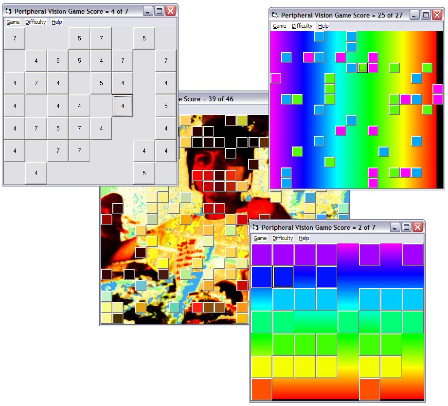 This is a simple game built while doddling with a couple of recent uploads; Ryan Spencer's 'A "Button" Form' txtCodeId=61380 and aditya8000's 'Visible Light Spectrum' txtCodeId=61446. Instead dozens of hand laid buttons this code uses a runtime generated array of buttons and an abstraction of aditya8000's code to detect and draw some colours. The Spectrum drawing routine (mine not aditya's) is not quite right and a black edge may appear at some form sizes, however the colour to wavelength and wavelength to colour routines work well.
