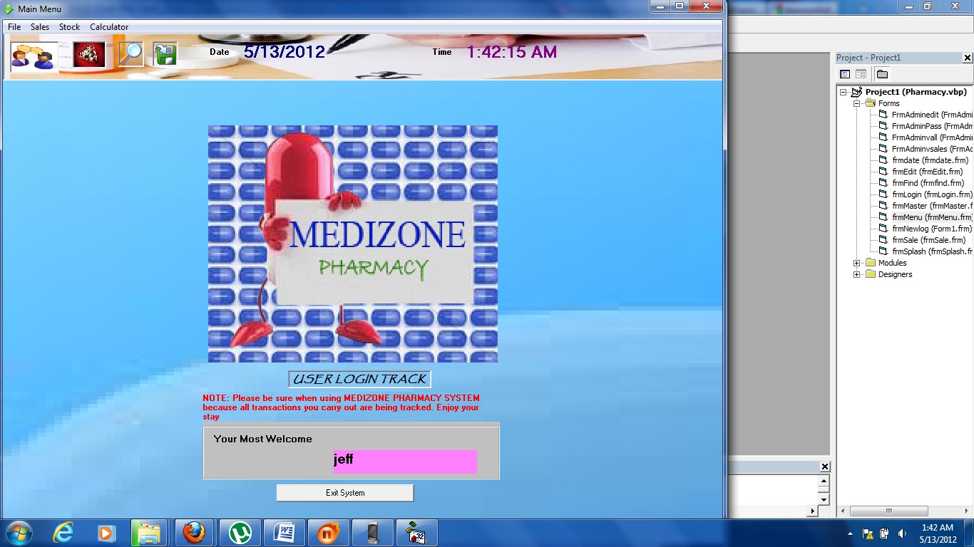 This code manages drug inventory, sales, and checks for stock levels on specific drugs.