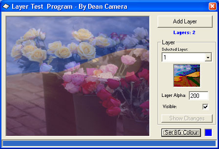 Please see the comments on the demo form for a longer explanation. Votes welcome, comments preferred. UPDATE: Major GDI memory leaks fixed, support for Win98, Layer Delete button and Percentage Alpha values added.