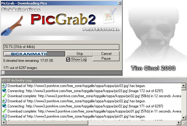 This program uses MSWINSCK.OCX and my HTTP Class Module, to get the source for a webpage, and scans the HTML code for links using my HTTP Module, and puts the links in the appropriate list. You can use this on a WebGallery portal, because PicGrab can visit all links to other webpages found in a webpage and get pictures from them as well. You can download all 'grabbed' pictures at once using the same unique (fully customizable) naming system used in the first version of PicGrab. Error trapping is top-notch.