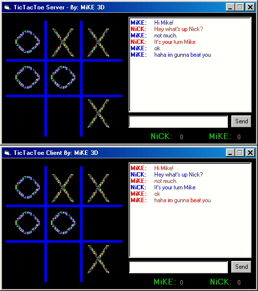 I've seen other entries on this simple little game but I didn't see one that was playable over the internet using Microsoft's Winsock control so I decided to make this complete Game that would let you play someone on the Internet. This Game includes a little Chat Room(with color from Microsoft's RichText Control), a Score Keeper that will keep track of your score and your partner's score, plus more. Do what you want with this coding, add more options for the chat room or anything you can think of. This is perfect for all you programmers that want to make a simple game playable over the internet with the help of the Winsock Control. Good Luck