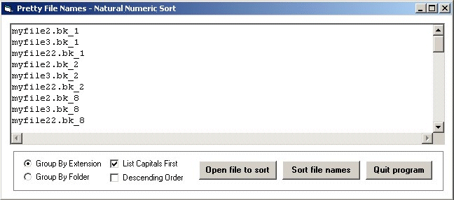 Also included is a compare function that can be used in place of VB's StrComp that will order the filename items it compares based on the settings described above. It does not sort an array of items but compares just two items and returns the result.