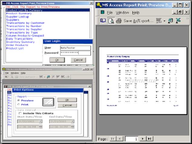 Download Print & Preview MS Access Report In VB(.mdw Protected Database) (182 KB)