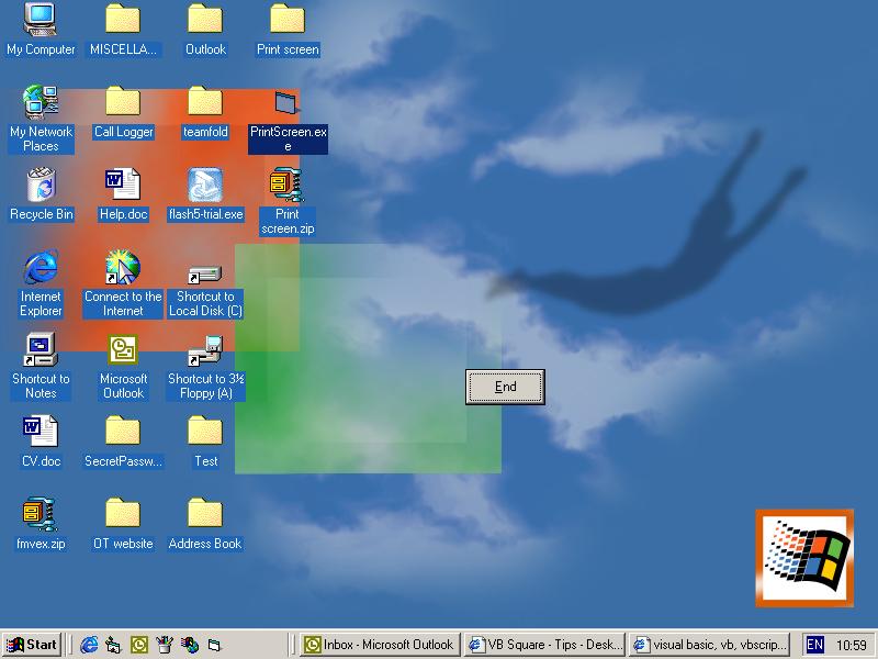 This code takes a screendump of your screen and puts it on the form. This can be used to make a form look transparent (although its not) or fool the user into thinking they're still looking at their screen but they're not, they're looking at a picture of their screen. Only half a page of code. The screen-shot below should prove useful. Feel free to comment.