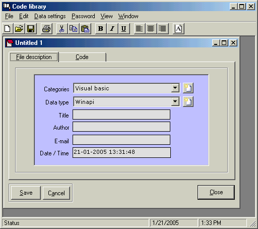 Every code you insert can be save in .RTF format so you can easy to print it, and save to database directly. If you using same code again now you can copy the old code which has been saved in code library, then paste the code to your project, how easyly is it.Another">https://www.einu.net">Another article