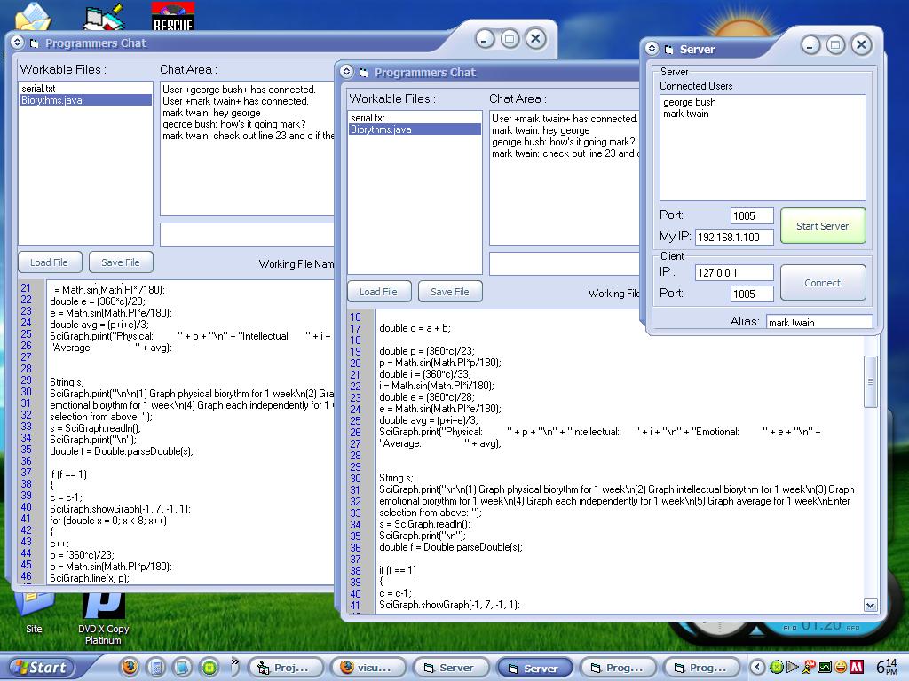 This program combines the ability to chat with the added ability to share an unlimited number of text files with an unlimited number of people. This enables several developers to work on several files for one project - or even one file - at the same time.
