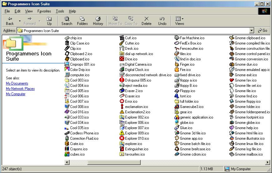A MUST HAVE for VB programmers. I often find myself needing icons to use in my apps and always find what I need in this suite. I DO NOT own some of these icons, but collected them from various sources. I DO NOT mean to pirate these icons but simply make them available to the users of VBC, so if you are an athour of some of these icons and wish for them to be removed just tell me.